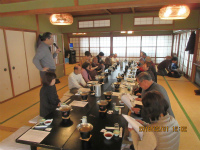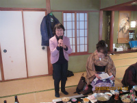 小林さんの挨拶からスタート 総会です。本年の予定等を説明 白石さんの音頭により乾杯 鈴木さんによる民話