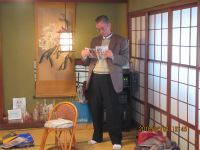 松野さんによる手品 日舞 自己紹介中