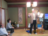 鈴木さんによる民話 鈴木さんを取り囲んで聞き入っています 松野さんによる手品(エ〜どうなってるの・・・)