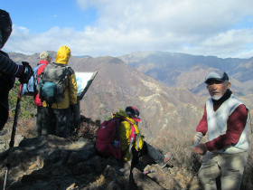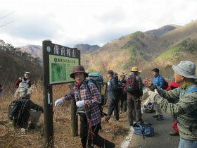 下山中 舟石峠で集合写真 舟石峠