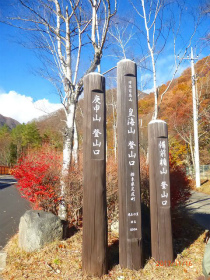 舟石峠から男体山方面 少し紅葉は過ぎましたがきれいですね かじか荘前の案内