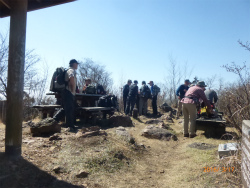 大岩さんで集合写真も撮りました。大岩山を経て毘沙門天へ。昼食です。ベンチや思い思いの場所に座り昼食を摂りました。