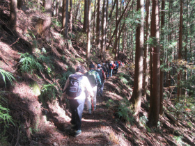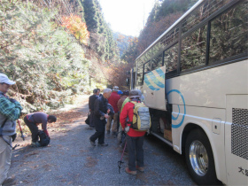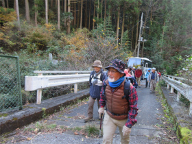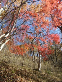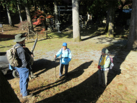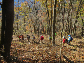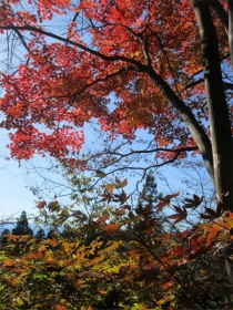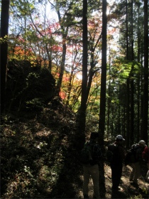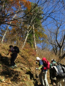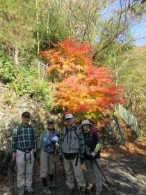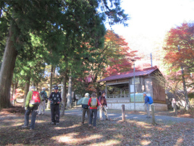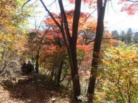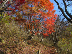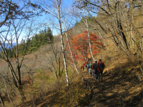 バスのドライバーに無理を言って男衾登山口まで行って貰いましたが最後の方はやっと通れたような感じでした。 登山口をスタートすると民家の庭先のような所を上ってゆきました。最初は登りが急でこれはキツイなと思っていましたが、それを超えると案外緩やかになってきました。 今年は紅葉がどんな感じかなと期待していましたが、期待通りとは行きませんでしたが赤く色付いた紅葉が出現すると、やはりきれいでした。 城峯神社まで登ると紅葉もきれい、秩父の山並みがくっきりと目前に迫りきれいな景色に、思わず“凄い”と声が出ました。紅葉は城峯神社周辺が一番きれいでした。 城峯神社から頂上はそんなに距離は有りません。頂上で食事と展望台に上り360度の景色眺める事が出来ました。 下山時も神社までは紅葉等が色付いてきれいでした。 城峯神社からの下山は1時間程度で楽に降りることが出来ました。