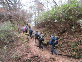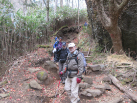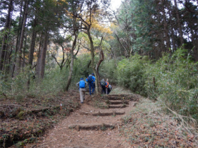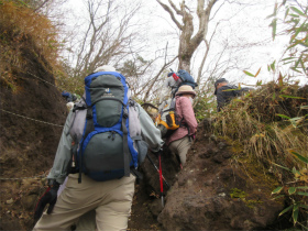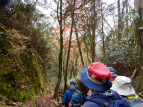急登が続き登りも大変でしたが、下りも公的神社へ向かうコースはもっと急傾斜が続き、何度か足を滑らせて転びそうになりました。
