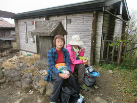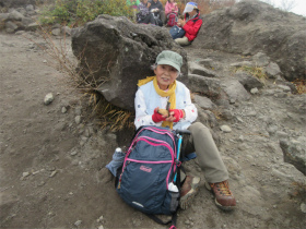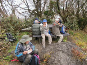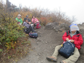 バスで向かっている時は天候も、お日様もも出て良かったのですが、頂上だけガスがでていて風も吹き寒いし、昼食を摂るのがやっとでした。