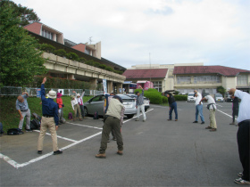 越生町役場まで1時間強と出発してあっという間に到着。恒例の体操を実施してスタートしました。