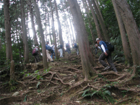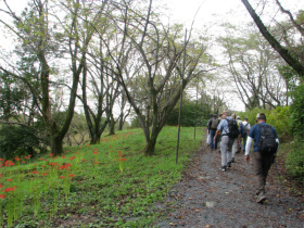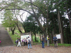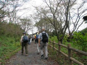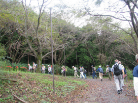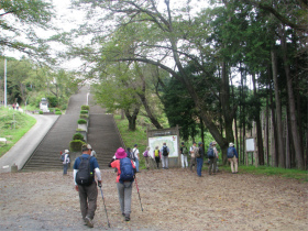 最初は桜の山公園内のきれいな道を進み、長い階段を上って『世界無名戦士の墓』に到着。ここから山道に入り樹林帯を歩いて西山高取に向かいます。今日のコースで一番厳しい登りでした。あとはなだらかな道を上り下りしながら頂上に到着。10時半頃に到着してしまいました。