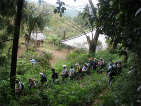 桂木観音に向かって出発。桂木観音下の広場で昼食としました。景色の良い場所で南側が遠くまで見渡せました。