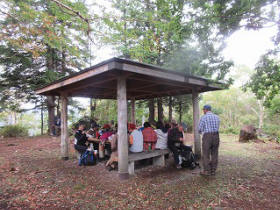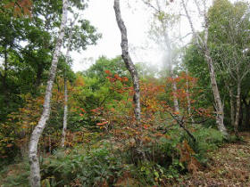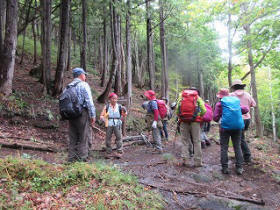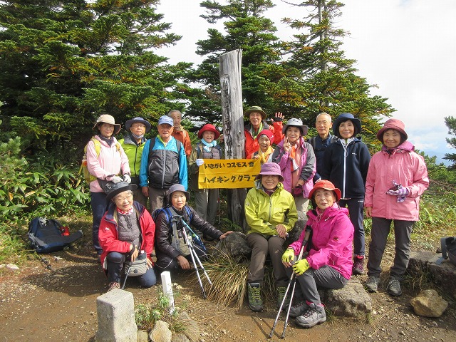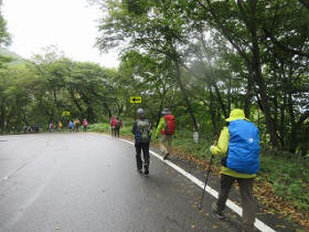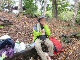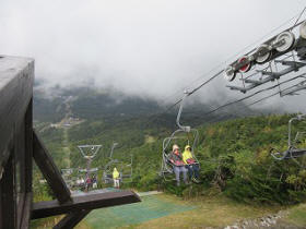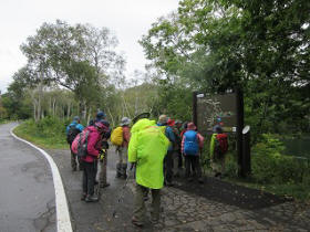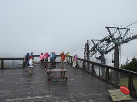 二日目のコースは「横手山スカイレータ−&ペアリフトで山頂を予定していたが、強風の為に運行が停止していて、渋峠からスキー場の急登を歩き山頂へ。下山も同じコース。 下山後も雨で、予定変更。志賀高原山の駅で昼食を摂り早目の帰宅になった。