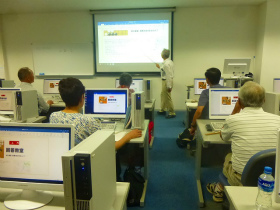 昨年10月のパソコン入れ替えに伴って台数が減少したため、新会員の方を優先して席を確保、旧会員はサポートに廻って、協力し合いながら学んでいます。