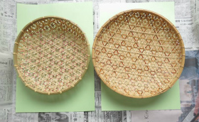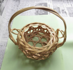 特に力作物では、下記の写真の03-菊華花籠を半数の部員が完成し、現在15-輪口編みのお盆に取り組んでいます。