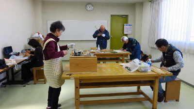 基本的には、久喜市菖蒲町の森下公民館の工作室を利用して