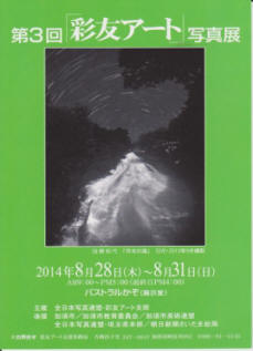全日本写真連盟・彩友アート支部主催の写真展が、今年も“パストラルかぞ”において8月29日から9月1日まで開催されています。百数十点の展示アートの中に当会員の白石、相澤両氏の力作が目を惹きます。奥の部屋には県展入選作品も展示されてありますので、併せて鑑賞できます。